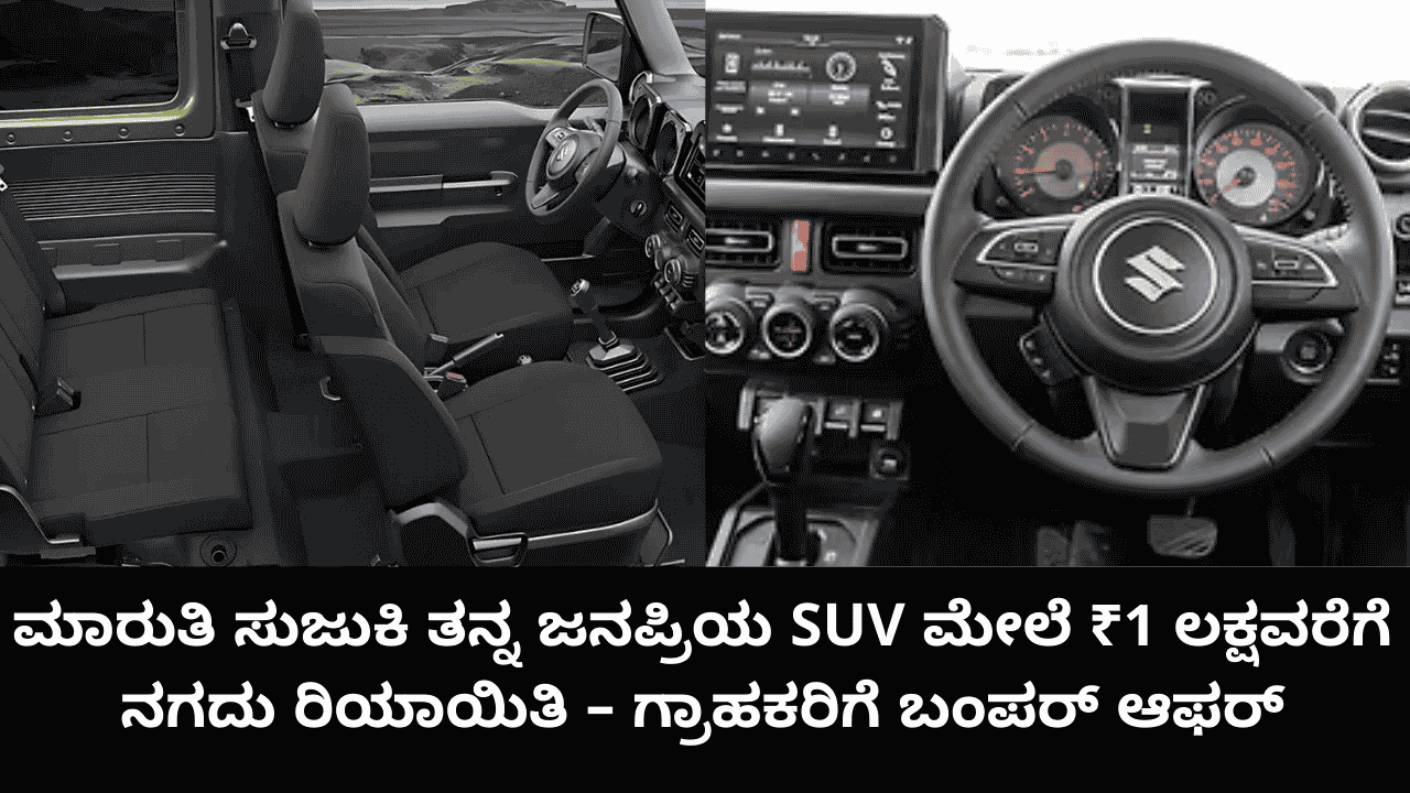 ಈಗ ಜಿಮ್ನಿ ಅಲ್ಫಾ ವೇರಿಯಂಟ್ ಖರೀದಿಸಿದರೆ ಗ್ರಾಹಕರಿಗೆ ಸಿಗುವ ನೇರ ಲಾಭ ₹1 ಲಕ್ಷ ನಗದು ರಿಯಾಯಿತಿ. ಆಫ್-ರೋಡಿಂಗ್ SUV ಹುಡುಕುತ್ತಿರುವವರಿಗೆ ಇದು ಒಳ್ಳೆಯ ಅವಕಾಶ. ಬೆಲೆ ಹಗುರವಾಗುವುದರಿಂದ ಈ ಕಾರು ಹೆಚ್ಚು ಜನರಿಗೆ ತಲುಪುವ ಸಾಧ್ಯತೆ ಇದೆ.