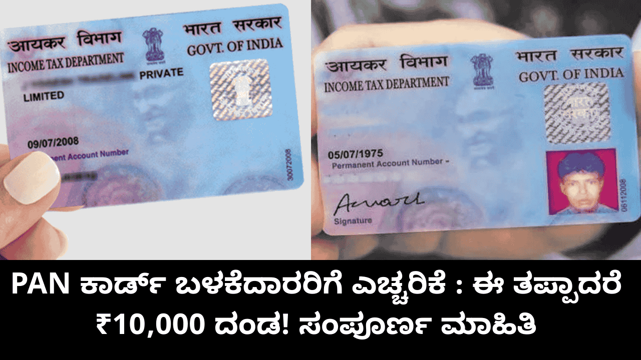 PAN CARD ಬಳಕೆದಾರರಿಗೆ ಎಚ್ಚರಿಕೆ : ಈ ತಪ್ಪಾದರೆ ₹10,000 ದಂಡ! ಸಂಪೂರ್ಣ ಮಾಹಿತಿ
